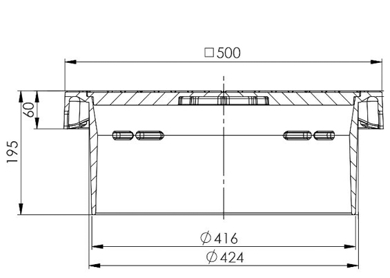 Firkantet støbejernsafdækning med rist til områder med let trafik. Afdækningen er dimensioneret til overkørsel med personbiler og varevogne. Den er fremstillet i støbejern og leveres med skørt til Ø425mm opføringsrør.