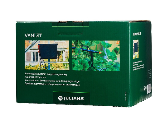 Juliana Vanlet består af en hovedbeholder, hvor vand og gødning automatisk blandes. Vand og gødningsblandingen fordeles til planterne via fødeslanger, Y-forgreningsrør og dryppinde.