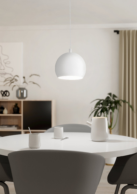 EGLO CAMASTRA pendel i hvid. Højde 200 cm, diameter 22,5 cm. E27, max. 40 watt. Leveres ekskl. lyskilde. IP20.