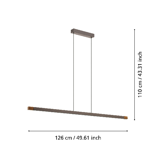 EGLO LISCIANA langbordspendel i grå med FSC-godkendt trædetaljer. Dæmpbar. Højde 110 cm, længde 126 cm, bredde 3,5 cm. LED, 22 watt, 2500 lumen, 3000 kelvin. IP20. Dette produkt indeholder en lyskilde med energieffektivitetsklasse: E.
