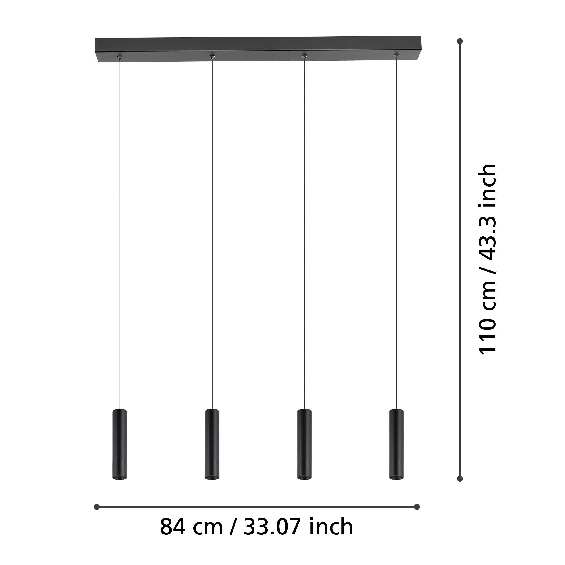 Pendellampen ALMUDAINA kombinerer et enkelt design med materialer af høj kvalitet og skaber en stilfuld belysning i opholdsrum. De fire cylindriske lampeskærme hænger i fine kabler fra en sort rektangulær baldakin og producerer et målrettet, nedadrettet lys. Det enkle sorte udseende understreger lampens moderne karakter og passer harmonisk ind i forskellige indretningsstile. Ideel til belysning af spiseborde, køkkenøer eller barer, sætter pendellampen stilfulde accenter i ethvert rum.