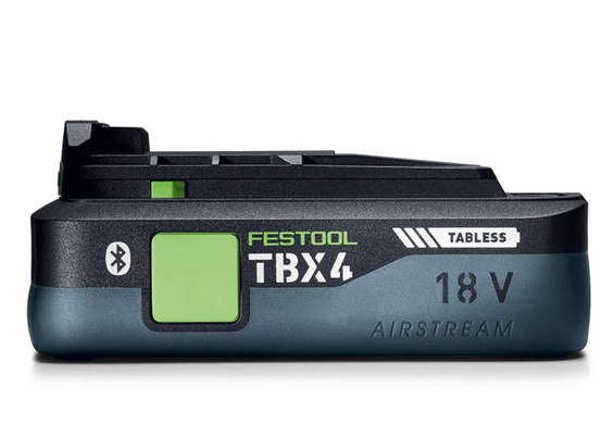 Det højtydende TBX 4-batteri med tabless-teknologi er din ideelle partner til kraftfulde opgaver – samtidig er det let og handy. Tabless-cellerne gør det muligt: lavere varmeudvikling, længere driftstider og hurtigere opladningstider. Takket være AIRSTREAM-teknologien køles batteriet aktivt i AIRSTREAM-batteriladeren SCA 16 før og under opladningen og er hurtigt helt opladet og klar til brug igen. Det optimerede energiflow i tabless-batterierne giver større ydelse og længere levetid. Takket være Bluetooth® starter støvsugeren automatisk, når akku-værktøjet tændes – og i kombination med Festool-appen får du detaljerede oplysninger om ladetilstand, temperatur og opladningscyklusser. Og selvfølgelig er batteriet komplet omfattet af Festool Services 3-års garanti.