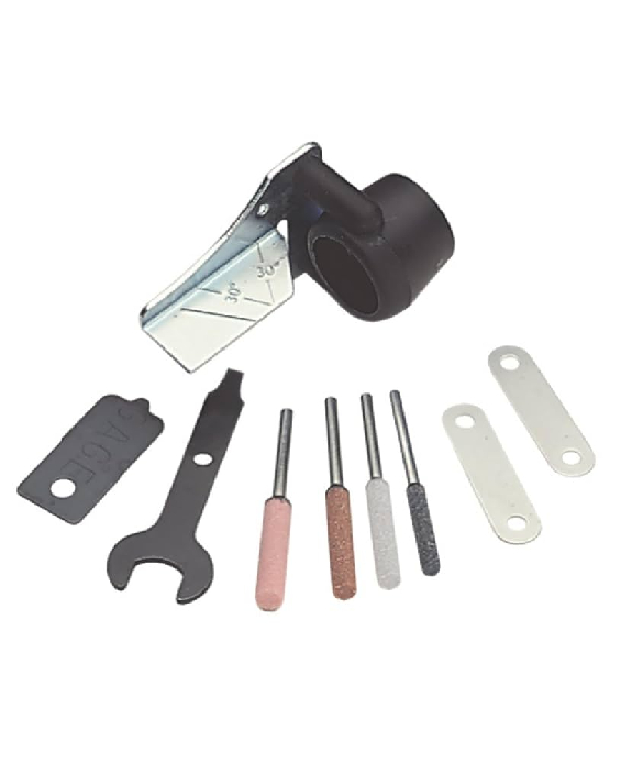 Giv din kædesav nyt liv ved hurtigt at sætte vinkelstyret på dit Dremel multiværktøj og bruge 1 af de 4 medfølgende slibesten, der passer til din kædesav. Meget hurtigere og mere praktisk end andre metoder.