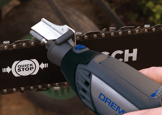 • Så kan du genopslibe kædesavens tænder i forskellige størrelser på med dit Dremel multiværktøj og slibeforsatsen til kædesave.