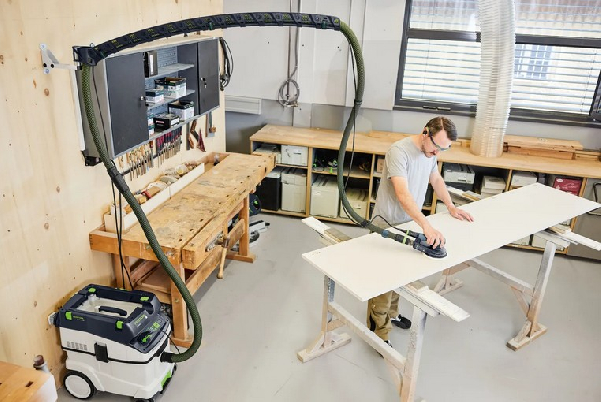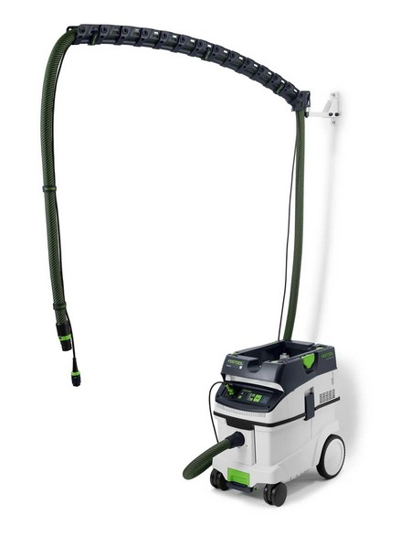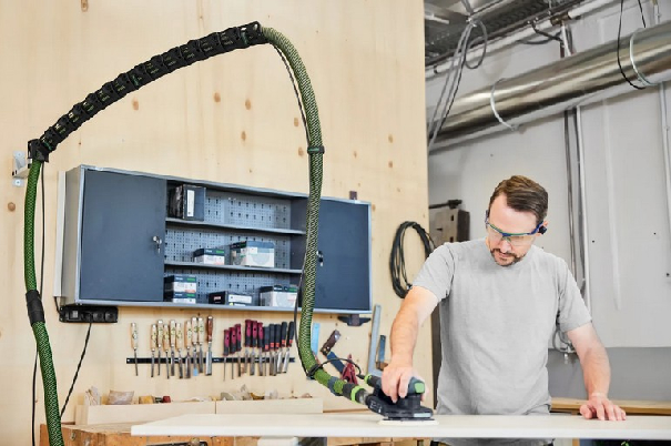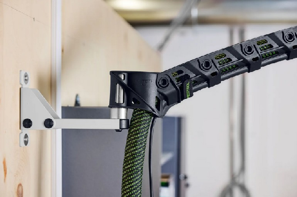 Den drejelige, ophængte udsugningsarm gør, at du kan bevæge dig frit uden at snuble over eller hænge fast i slangen. Kan nemt tilpasses op til 1,5 m i længden og kan fastgøres sikkert til væggen. I kombination med støvsugere og tilbehør som Y-ventiler eller forudskillere skabes et perfekt organiseret system til effektiv støvudsugning – ideelt til lange slibe-, save- eller fræseopgaver. Til ergonomisk, rent arbejde med maksimal komfort.
