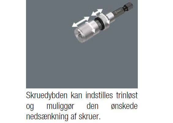 • Muliggør nedsænkning af skruer til overfladeniveau