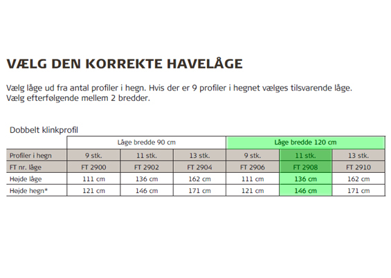 Inkl. stolper, hængsler og greb Bredde: 120 cm Højde: 136 cm