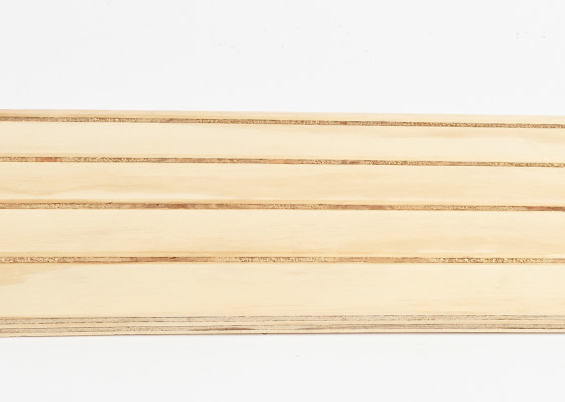 Afstanden på sporene er 2” (5,05 cm) og dybden er 4,0 mm. Pladen er fremstillet med god finérkvalitet i pladens øverste lag, hvorfor der ikke vil fremkomme knaster i sporene.